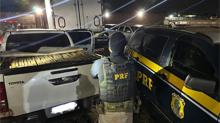 A caminhonete possuía registro de furto, desde dezembro de 2024, em Cuiabá (MT), e estava carregada com tabletes de maconha.
