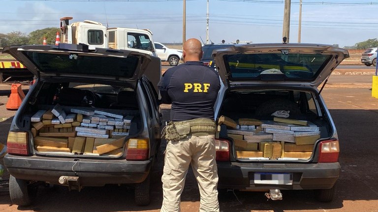 Dentro dos dois automóveis eram transportados os tabletes de maconha.