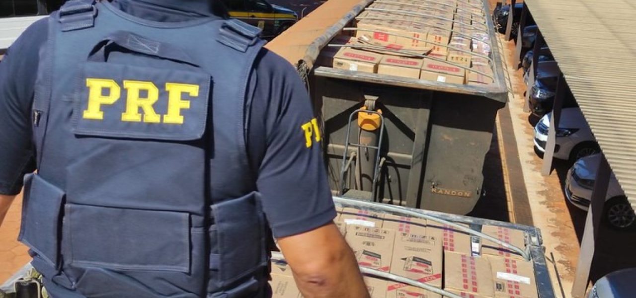 A Polícia Rodoviária Federal (PRF) apreendeu 500 mil maços de cigarros, na manhã desta quinta-feira (22), em Campo Grande (MS). 150 celulares também foram apreendidos na carga ilegal.