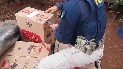 Em vistoria, constatou-se que o conjunto estava completamente carregado com grande quantidade de caixas de cigarro de origem estrangeira, desprovidas de documentação fiscal. A quantidade aproximada foi de 850 mil maços, com contagem exata a ser realizada posteriormente pela Receita Federal do Brasil em Ponta Porã/MS, para onde foram encaminhados o veículo e a carga.