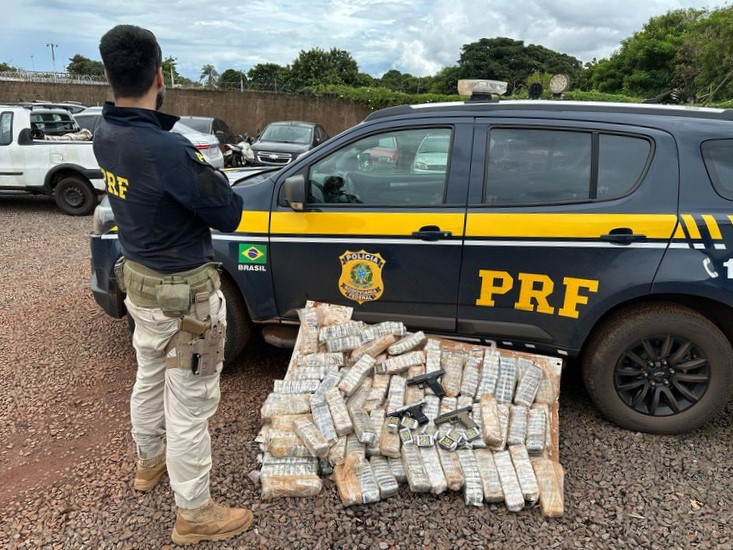 Na manhã desta quarta-feira, 26 de fevereiro, a Polícia Rodoviária Federal (PRF) realizou a apreensão de três pistolas, munições e 106 kg de haxixe, durante uma fiscalização na BR-163, em Campo Grande (MS).