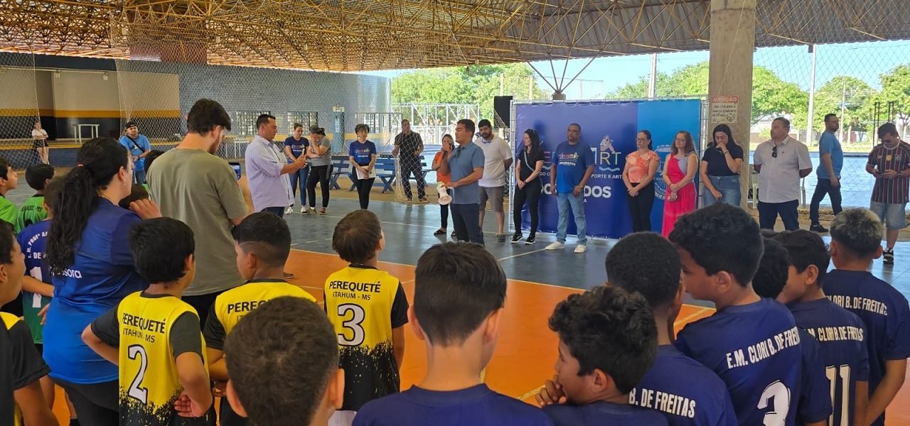 O Projeto Educart – “Cuidando com Educação, Esporte e Arte” encerrou oficialmente suas atividades de 2025 no sábado (29), em uma solenidade realizada no complexo esportivo Jorge Antônio Salomão, o Jorjão, no Jardim Água Boa. O evento contou com a presença do prefeito Marçal Filho, do secretário municipal de Educação Nilson Francisco da Silva, equipes pedagógicas, estudantes e familiares. A programação incluiu também a final do torneio de futsal sub-11 masculino, que reuniu alunos de diversas escolas da rede municipal.