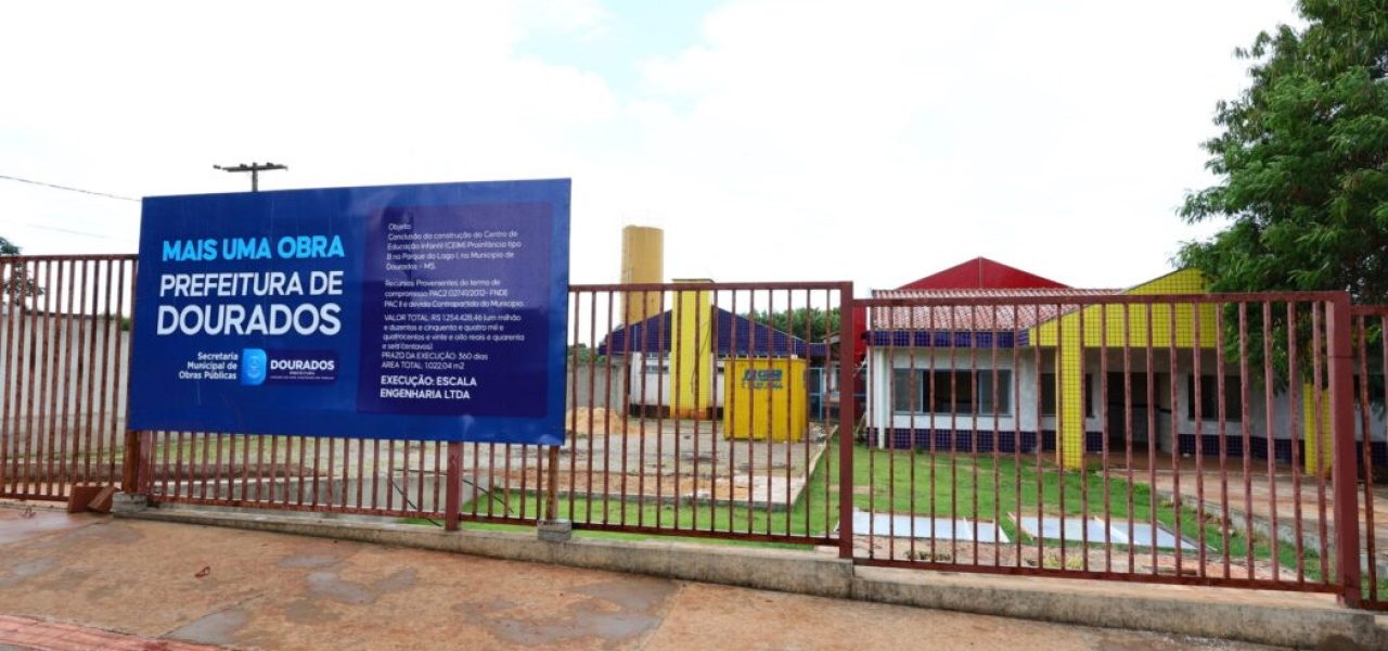 A Prefeitura de Dourados, por meio da Secretaria Municipal de Obras Públicas (Semop), retoma nesta quarta-feira (18) a construção das obras do Centro Infantil de Educação Municipal (Ceim) do Parque do Lago I, que foi iniciada em 2013 e que foi paralisada por diversas vezes, sendo a mais recente em setembro de 2024. O investimento total será de R$ 1.254.428,46, sendo R$ 934.173,47, recursos próprios da administração municipal e R$ 320.254,99, proveniente de recursos do Fundo Nacional de Desenvolvimento da Educação. O prazo estimado é de 12 meses.