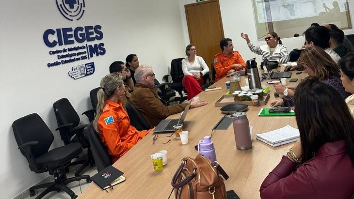 A SES (Secretaria de Estado de Saúde de Mato Grosso do Sul) reuniu quinta-feira (31), na SSD (Superintendência de Saúde Digital), representantes da (Semadesc Secretaria de Meio Ambiente, Desenvolvimento, Ciência, Tecnologia e Inovação), do Corpo de Bombeiros Militar e da UEMS (Universidade Estadual de Mato Grosso do Sul) para alinhar as diretrizes técnicas do Estado no eixo da saúde pública ao longo do Corredor Bioceânico, no trecho que compreende o território sul-mato-grossense.
