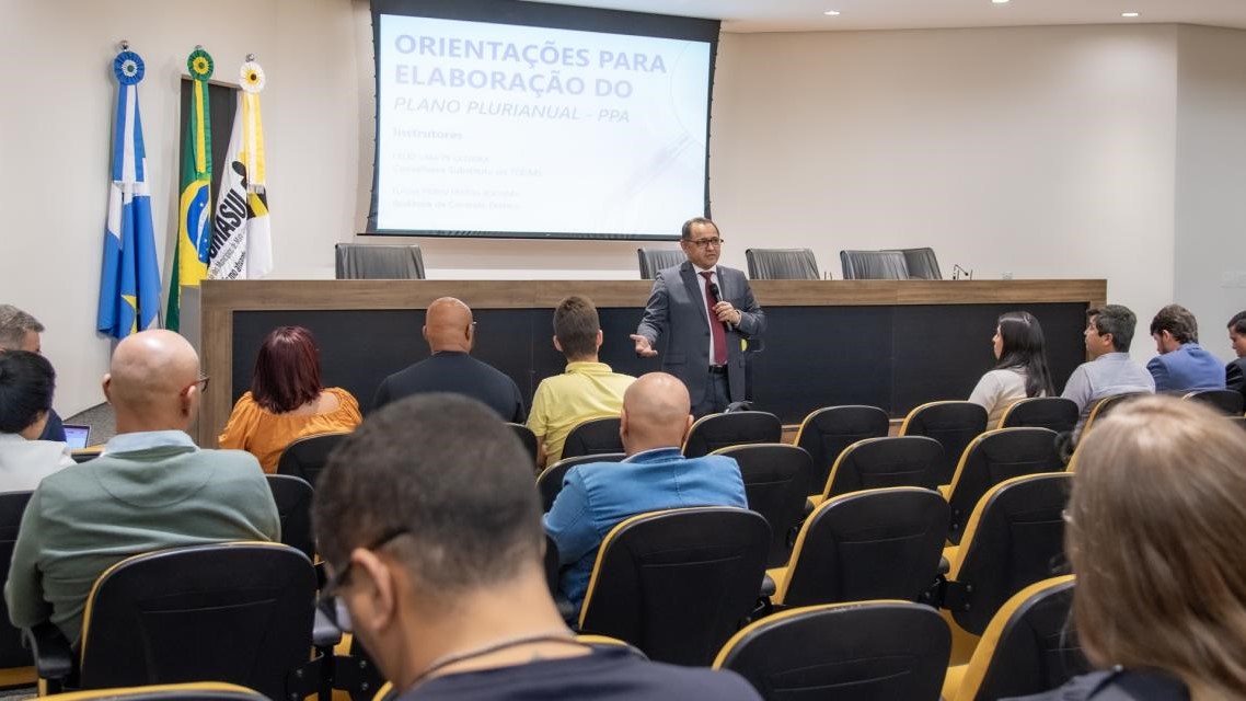 Representando o TCE-MS, o conselheiro substituto Célio Lima de Oliveira ministrou uma palestra sobre a importância da correta elaboração do Plano Plurianual (PPA), instrumento essencial para garantir a efetividade das políticas públicas. O tema foi aprofundado com a apresentação do Roteiro Prático do PPA, elaborado pelo Tribunal, apresentado pela auditora de controle externo Flávia Pierin Freitas Buchara.