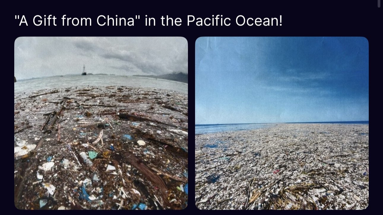 Em 20 de abril de 2025, o presidente dos Estados Unidos, Donald Trump, utilizou sua plataforma Truth Social para denunciar a China como uma das principais responsáveis pela poluição no Oceano Pacífico, chamando os detritos flutuantes de “um presente da China”. Acompanhada de fotos que mostram ilhas de lixo plástico, incluindo garrafas e outros resíduos, a declaração reforça a postura crítica de Trump em relação às práticas ambientais de Pequim. A mensagem, publicada pouco antes da Páscoa, gerou debates sobre a responsabilidade global pela crise de poluição marinha e reacendeu tensões entre as duas maiores economias do mundo.