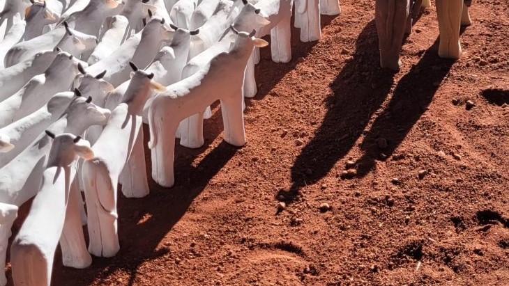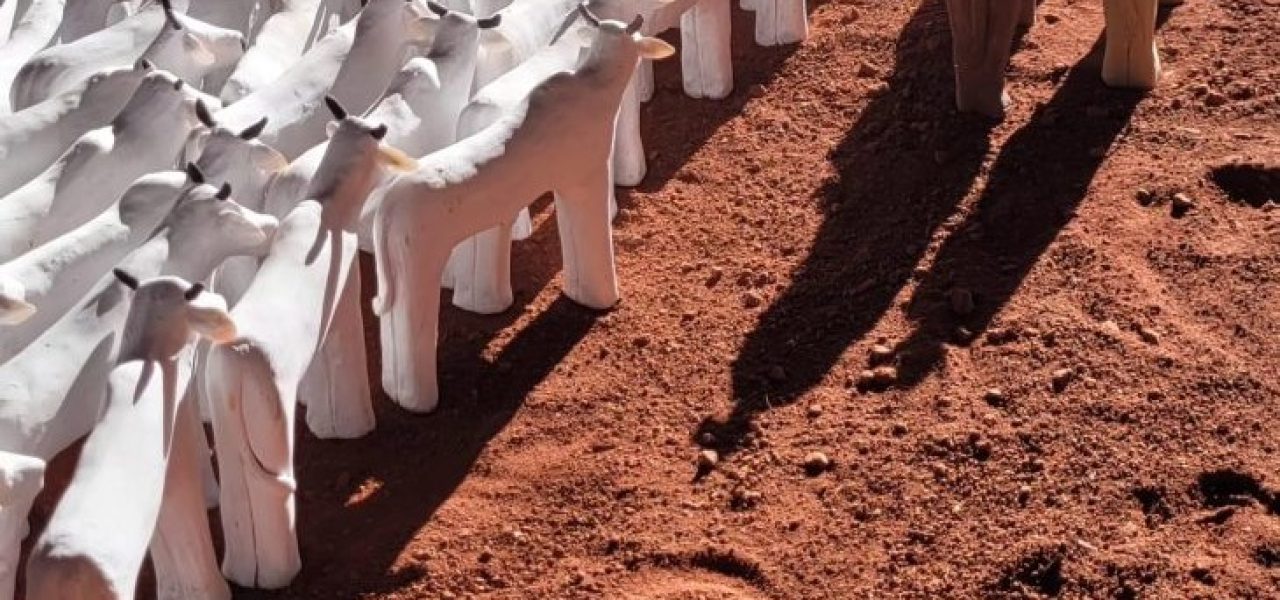 “Vou apresentar uma instalação feita de argila que representa uma comitiva de gado e é um trabalho que conta um modo de vida, uma prática que está enraizada no cotidiano dos pantaneiros. Desperta memórias afetivas, tem identidade, tradição, cultura. Emociona as pessoas, né? E mostrar essa obra na Bienal tem muita importância para mim, porque é poder celebrar nossas raízes, valorizar nossos costumes, as nossas tradições”, explica a artista plástica sul-mato-grossense Buga Peralta.