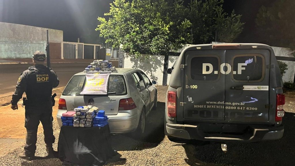 Policiais militares do DOF (Departamento de Operações de Fronteira) apreenderam nesta quinta-feira (17), em Maracaju, um VW Golf carregado com quase 30 quilos de maconha. Na ação, uma mulher de 30 anos foi presa.
