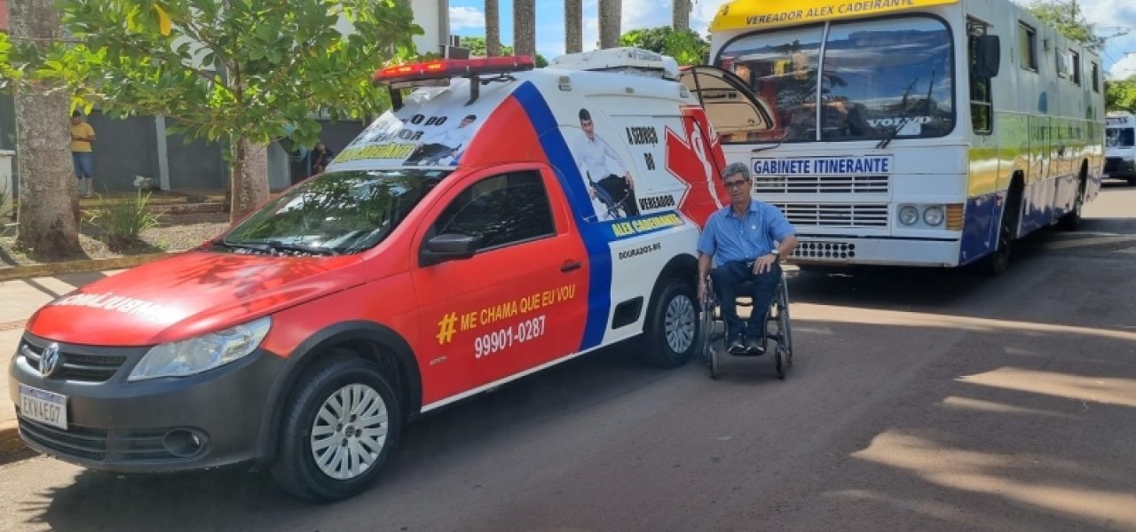 Além da aquisição da ambulância, Alex Cadeirante inaugurou um gabinete itinerante, equipado em um motorhome, que estará presente no último sábado de cada mês em diferentes bairros e regiões de Dourados. O objetivo é aproximar o atendimento parlamentar da população, facilitando o acesso dos cidadãos aos serviços e promovendo uma comunicação direta e eficaz entre a comunidade e o legislativo municipal.